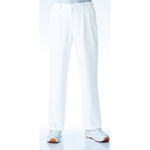 着る人を選ばない、スッキリとしたラインのストレートタイプ。【仕様】ツータック/脇ゴム/両脇両後ろポケット付/ウエストベルト通し付 |