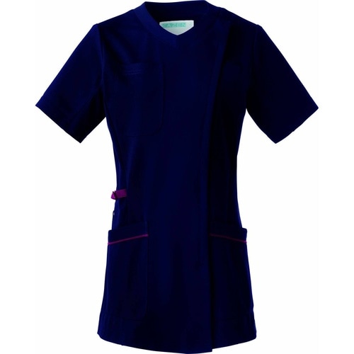 KAZEN レディススクラブジャケット半袖 981−48(ネイビーXプラム) L A0AT-8464