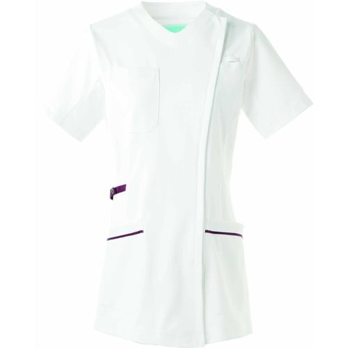 KAZEN レディススクラブジャケット半袖 981−15(ホワイトXプラム) L A0AT-8465