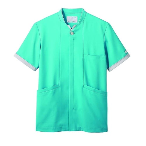 スクラブの軽快な着心地はそのまま、端正なシルエットできちんとした印象に。体の動きに自然に沿うストレッチ素材を使用しています。