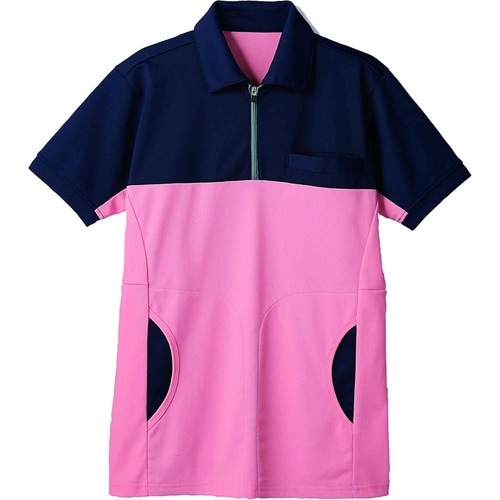 ポロシャツ(男女兼用・半袖) 72−482(ネイビ−/ピンク) M