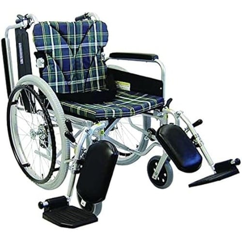 カワムラサイクル 車いす(自走用・アルミ製)背折れ式 KA822−40ELB−H 緑チェックA9 A0AT-9499