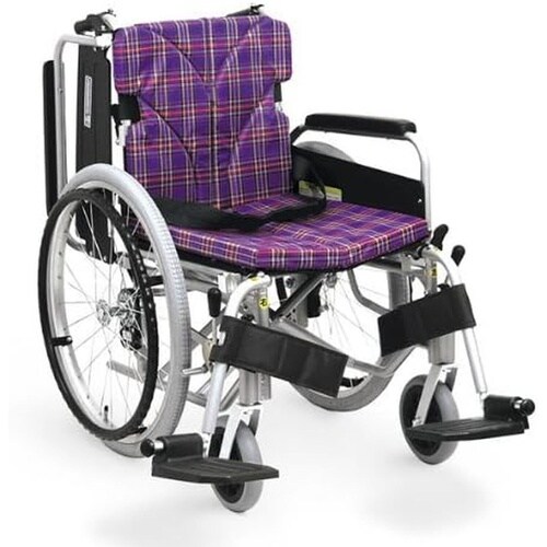 カワムラサイクル 車いす(自走用・アルミ製)背折れ式 KA822−40B−H 紫チェックA11 A0AT-9502