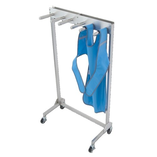 奥行の少ない場所でもお使いになれる、防護衣専用ラックです。木製ハンガーに掛ける手間なく、掛けるのも着るのも楽です。 |