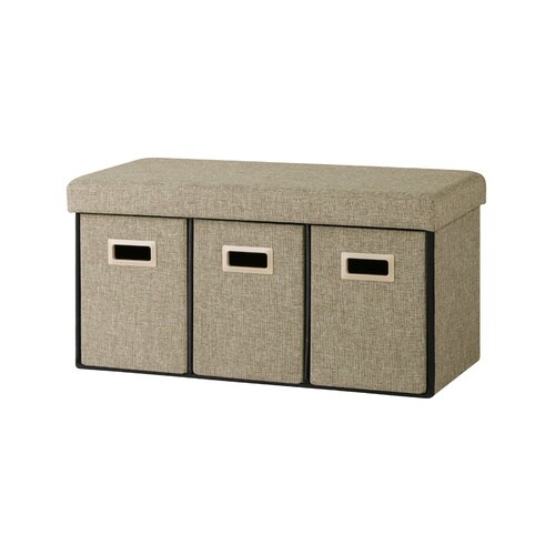 カラー:ブラウン・製品サイズ:W760×D375×H385mm・本体重量:9500g・材質:【構造部材】繊維板・【張り材】ポリエステル・【クッション材】ウレタンフォーム・耐荷重:収納ボックス時:天面10kg、引き出し1個あたり3kg、スツール時:80kg・個装入数:1台