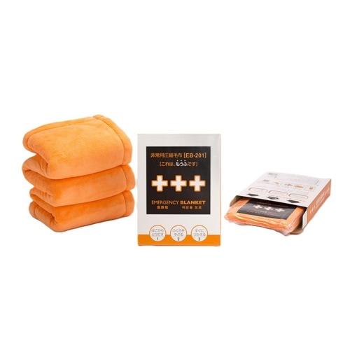 従来の防災毛布より備蓄場所を約70%削減。EB−201BOXは避難所の不安が少しでも和らぐよう、やさしい肌触りにこだわったポリエステル100%の素材を採用しています。 |