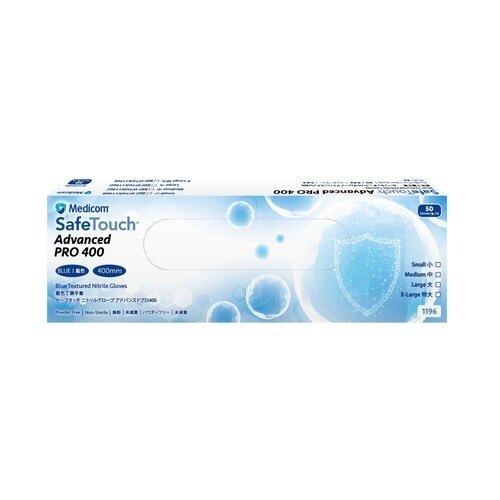 強度に優れる合成ゴム(ニトリルゴム)製で、全長400mmのロングカフ仕様なので、前腕部までを保護し感染性物質や化学物質による暴露リスクを低減します。 |