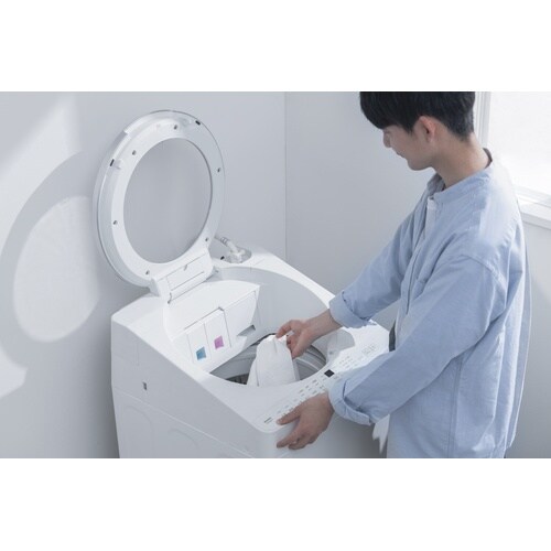 液体洗剤や柔軟剤をあらかじめタンクに入れておける「自動投入機能」を搭載。黒カビが発生しにくいステンレス槽を採用し、自動槽洗浄機能搭載で槽の除菌、黒カビの抑制が可能です。 |