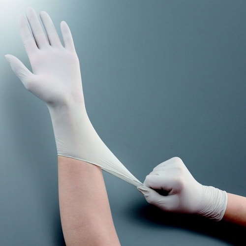 「天然ゴムの特性を有するニトリルゴム」の特許素材です。(特許番号 P2008−545814A)従来のニトリルグローブに比べ伸縮性(従来品の1.5倍以上)があり、優れた操作性を実現します。 |