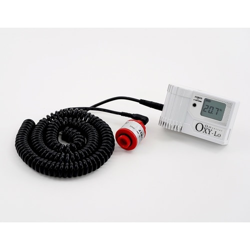 応答速度の速いセンサーを採用し、低濃度領域の残留酸素濃度測定に対応します。一般的な酸素濃度計よりも細かい単位(0.01%)まで測定が可能です。軽量・コンパクトで手のひらに収まるサイズ感です |