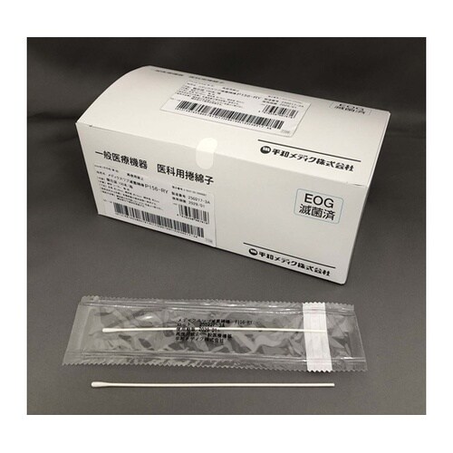 主に咽頭拭い液採取用の綿棒です。採取部には、長年の採用実績のあるレーヨンを使用しています。軸は、柔らかすぎず、適度な強度がある紙軸を採用しています。 |