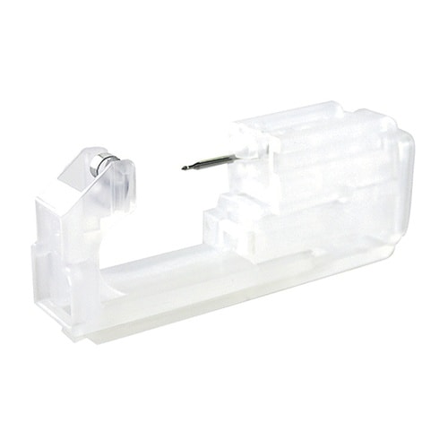 ファーストピアスが装填された単回使用の滅菌済穿孔器です。装飾部には人工石を使用しています。 |