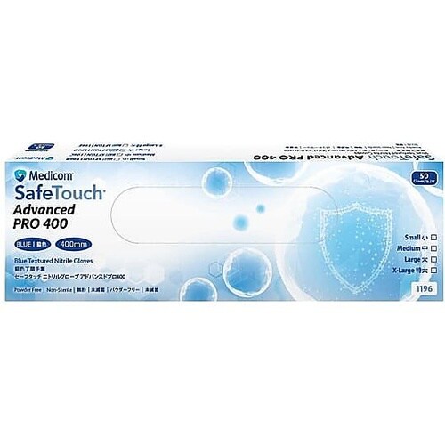 強度に優れる合成ゴム(ニトリルゴム)製で、全長400mmのロングカフ仕様なので、前腕部までを保護し感染性物質や化学物質による暴露リスクを低減します。 |