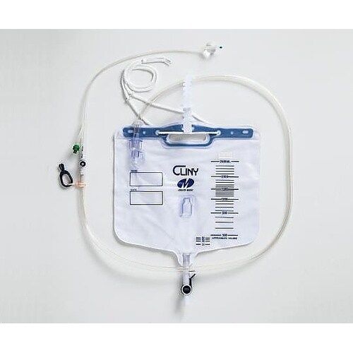 カテーテルと採尿バッグのセットとなります。カテーテルと採尿バッグの接続部は、あらかじめ熱縮チューブによりシーリングされた閉鎖式システムです。 |
