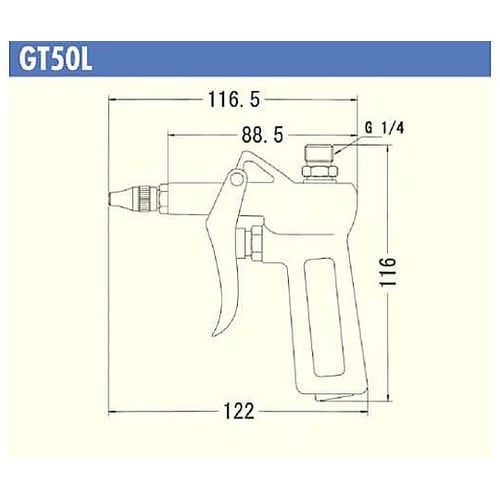 レバー付き吊り下げ用エアー流量調整付き ノズルのローレット部を閉めるとエア流量が多くなり、緩めると少なくなります。 |