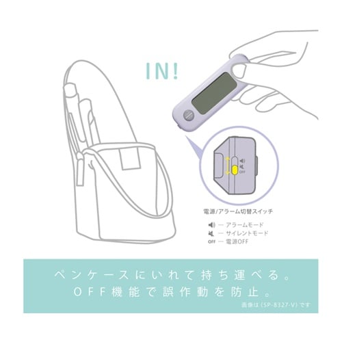 持ち運びに便利なコンパクトサイズのスティック型タイマーです。いつもの持ち物と一緒にペンケースやバッグに入れて持ち運べます。3つの角度から画面をはっきり見ることができます。 |