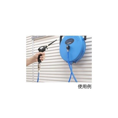 各種エアツールとコンプレッサとの接続に。リールごと壁や柱にねじ止め可能です。リールが引き出し方向に向くので、ホースの引き出しがスムーズです。自動巻き取り式だから収納もコンパクトです。 |