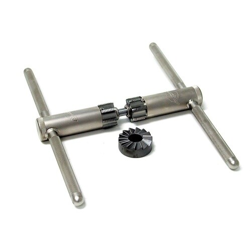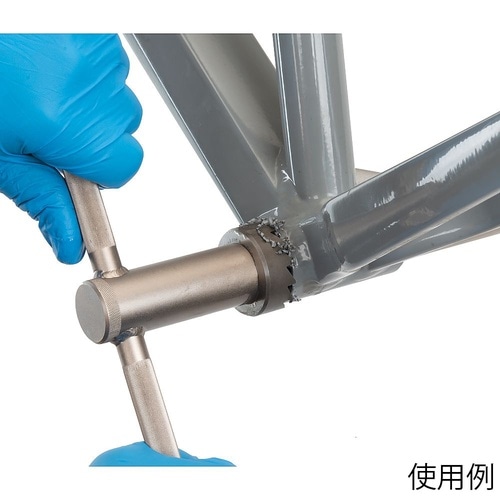 フレームのBBシェルにネジ加工を行う精密切削工具。自転車フレームのBBシェルには左右のネジが同一軸上にあること、BBシェルの端面はその軸に対し垂直であることが求められます。 |