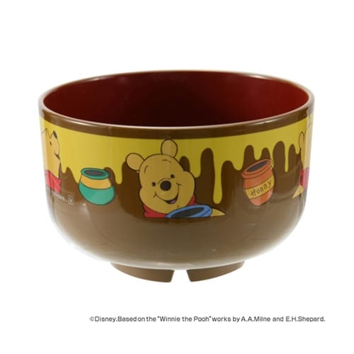 ぐるっと1周にプーさんのキャラクターが描かれた樹脂製の汁碗です。大好きなキャラクターと一緒だとお食事も楽しくなります。樹脂製なので、落としてしまっても割れにくく安心です。 |