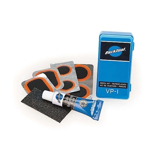 コンパクトで携帯に便利なパンク修理用パッチキット。 |