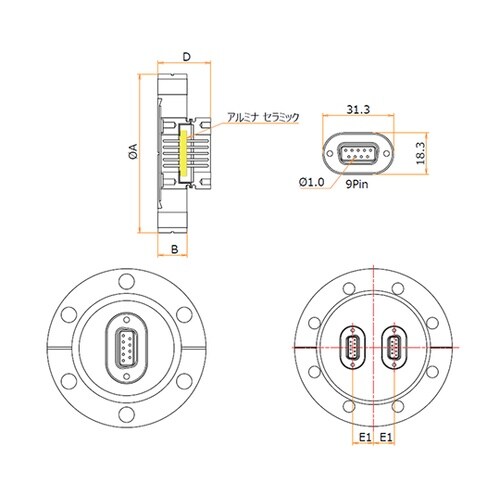 多ピン D−Sub 9 PIN x 8個付き ICF152 フランジ C152MD98A