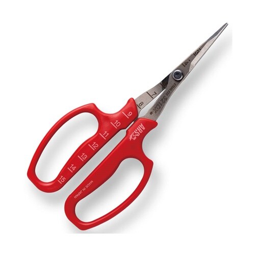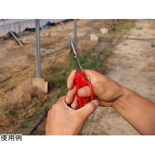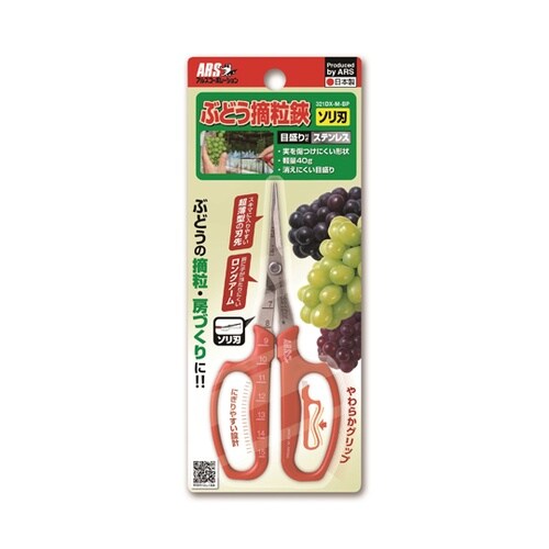 ぶどうの粒を間引く摘粒作業にご利用いただく摘粒鋏です。ぶどう農家の意見を取り入れ、耐久性を保ちつつ、房の狭い隙間にも刃先を入れやすい「細く薄い刃」を実現しました。 |