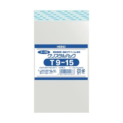 シモジマ OPP袋 テープ付き クリスタルパック T9−15 100枚入り 006740600 A0AV-1462