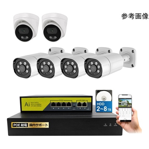 ブロードウォッチ 400万画素PoEタイプNVR防犯カメラセット バレットカメラ4台 ドームカメラ2台、HDD4TB付き SEC−N−4M2FM−4T A0AV-2942