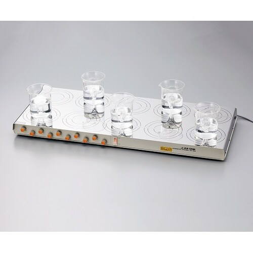 強力希土類マグネットを使用しています。10個共に単独回転ですので、多種・多量の撹拌が同時にできます。電子制御による円滑な回転は、定電圧式で回転ムラがありません。 |