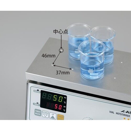 小型容器の加熱・撹拌に適しています。バイアル瓶や試験用チューブなどの小容量サンプルを加熱しながら撹拌が可能です。従来のマグネチックスターラーでは難しかった小型撹拌子による安定した撹拌が可能です。 |