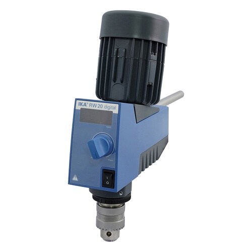 シャフトが本体を貫通しますので、スタンドに固定後も撹拌羽根の高さ調整が可能です。回転数は2段階の範囲切り替えが可能で、見やすいデジタル表示です。 |