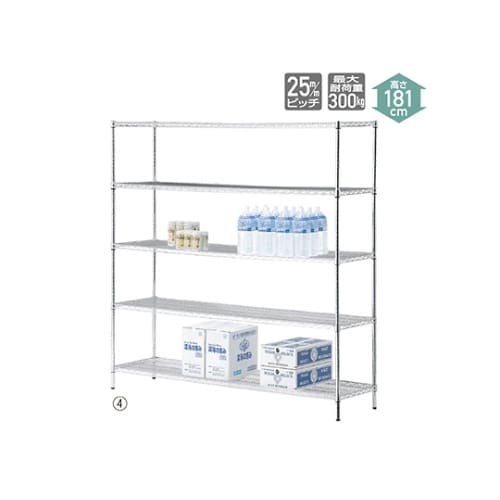 ワイヤーラック 重量棚展開 H181cm 5段 D45.7cm W182.2cm 61−62−10−4