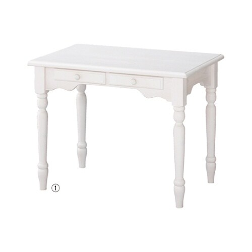 フェミニンなフォルムのロクロ脚テーブル。片面のみに引き出しが付いています。