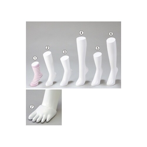 靴下を履かせるだけで手軽にディスプレイできる自立タイプです。需要の多い5本指ソックスの演出に効果的です。別売の婦人用ディスプレイ(61−7236−73)と組み合わせて使用します。 |