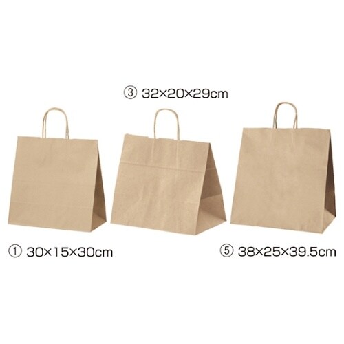 持ち手付き紙袋 丸ひもタイプ 茶無地 38×25×39.5 入数200枚 61−431−24−20