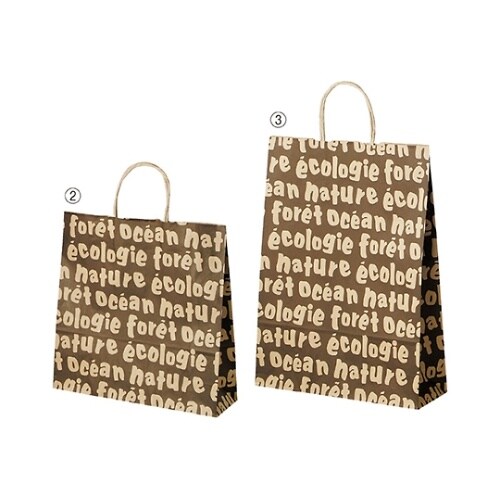 一面に文字がプリントされた紙袋。 |
