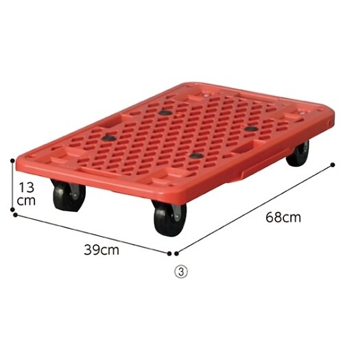 素材:硬質ポリプロピレン製 | サイズ:W68×D39×H13cm | 重量:4.2kg | 耐荷重:160kg | 自在キャスター:直径7.5cm(…