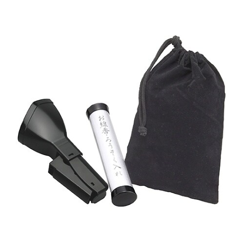 お墓参りの必需品を便利なセットにしました。セット内容物:軽着火風防ライター補助具、お線香・ろうそく入れ、巾着袋 軽着火風防ライターは着火レバーを握るだけで楽に着火ができます。 |