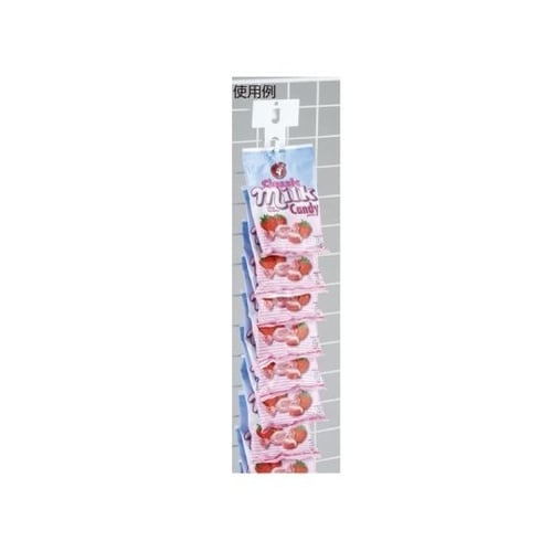 商品を引っ掛けるだけで、キレイにディスプレー。什器サイドなど狭いスペースを有効活用できます。ヘッダー部分にもフックがあり、簡単に什器に取り付けることができます。 |