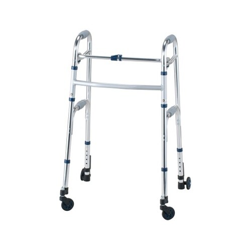 前脚はプラスチックスイングキャスター、後脚はキャスター付ストッパーが付いた室内専用歩行器。背の高い方におすすめのハイタイプです。前輪のスイングキャスターが自在に動き、4輪での歩行がスムーズです。 |