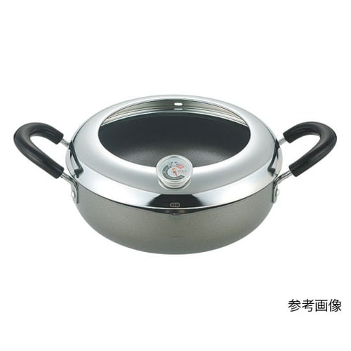 温度計付で揚げ物の温度を一目でキャッチ。油の飛びハネを防止するガード枠付。 |