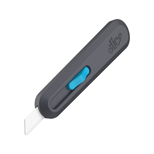 スライススマートユーティリティカッターナイフ10558は、刃先が丸みを帯びた構造で、安心してご使用いただけます。厚手の段ボール開梱作業、紙・フィルム・ガムテープ・段ボール等を切る作業に適しています。 |