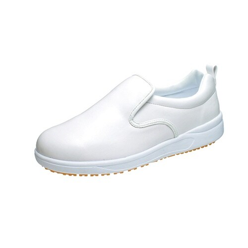 油に強い耐油性ソールゆったりの3Eサイズで、足なり設計ラストを採用。足への負担をやわらげます。床面に付着した油脂類に、幅広く対応します。