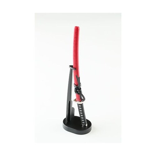 幕末の英雄である坂本龍馬の愛刀・陸奥守吉行をモチーフとした日本刀型ペーパーナイフです。刃体には、愛刀名が刻印され、また、互の目(半円形状)刃紋が特徴的です。鞘は、赤石目調で純和風な装いを感じさせます。 |