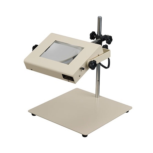 作業台等の上に置いて使用する最もスタンダードな形状の照明拡大鏡。角形のレンズは、丸型のレンズで発生するレンズ外周部の歪みをカットしており、全数検査等、長時間の作業にも対応が可能。 |