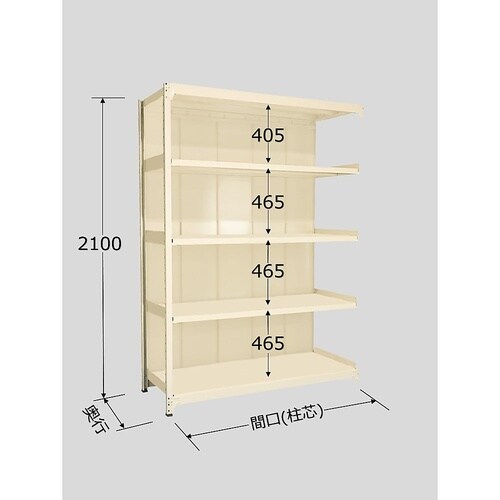 寸法:W1200×D600×H2100mm | 段数:5段 | 耐荷重(棚1段当り):150kg | 耐荷重(棚1連当り):600kg | 本体色:ア…