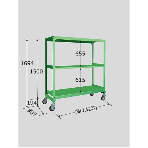 寸法:W900×D600×H1694mm | 段数:3段 | 耐荷重(棚1段当り):150kg | 耐荷重(1台当り):450kg | 本体色:グリー…