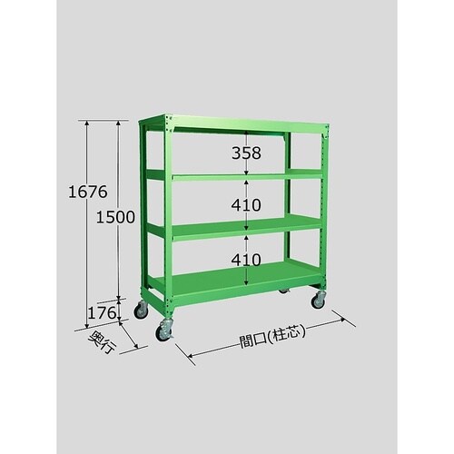 寸法:W900×D450×H1676mm | 段数:4段 | 耐荷重(棚1段当り):150kg | 耐荷重(1台当り):450kg | 本体色:グリー…