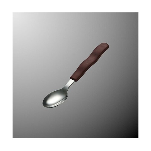 高齢者施設、病院でも使いやすい小さめヘッド。太めで波型のハンドルは、手にフィットしやすく、食器の縁から滑り落ちにくい形状。 |