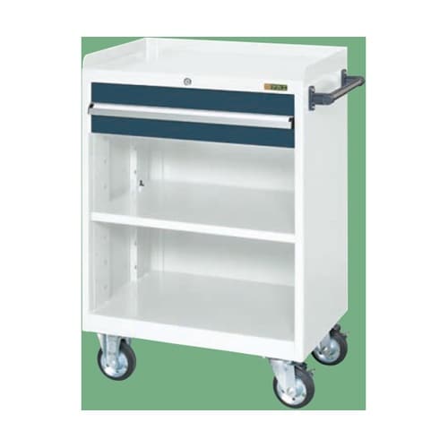 サカエ キャビネットワゴン(棚板付) W700×D480×H1025mm 44kg (本体)パールホワイト、(引出)ダークグレー CV−101TWD A0AW-3286